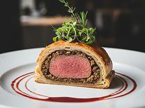 Elegante presentatie met rode wijnsaus en verse kruiden€ 95,00 1 kg, 10 pers