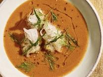 1L (tip! doe in je bord een paar tomaatjes•bieslook en garnaaltjes/gamba’s of rivierkreeft en gebruik het als tussengerecht)€ 19,50